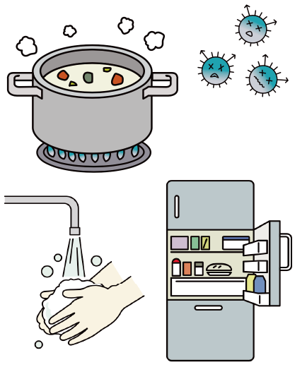 しかし、これを覚えて安心するのは医学生のみ。まだまだ暑い日が続きます。本当に安心するには、食中毒予防の3原則「付けない、増やさない、やっつける」を覚えましょう。手洗いや食器、調理器具の洗浄により菌を付けない。菌を増やさないよう食材は適切な温度で保存し調理後は速やかに食べる。十分加熱し菌をやっつける。詳しくは、厚生労働省ホームページもご参照ください。