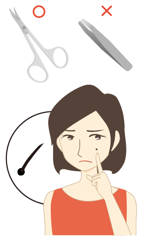 ほくろは他の皮膚細胞より細胞分裂が活発で血流も豊富なため、ほくろに生えた毛は酸素や栄養をたくさん利用する分よく育つそうです。よく育つことは何よりですが、それゆえ変に目立ちます。つい抜いてしまいたい衝動にかられることもあるでしょう。でもそれは御法度。ほくろ毛を抜くのは大きな刺激となり、それを慢性的に繰り返すと稀ではありますが、ほくろ癌になることがあるそうです。癌にならずとも毛嚢炎を起こし痛くなることもあります。ほくろ毛は抜くより切るのが適切とされます。もちろん切らずにおいても問題はありません。